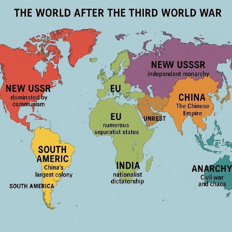 "ChatGPT попросили показать карту мира после Третьей мировой… И вот что он выдал: NEW USSR