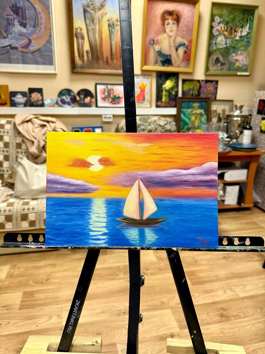 Сходила в изостудию "Стронциановая голотурия": 🟣Наконец закончила морской пейзаж с парусом, который пылился аж с весны 2024 года! Осталась ещё одна недоделка и свобода (нет). 🟣Будучи нервной и вечно недовольной ученицей, принесла Риоху моего года рождения, чтобы задобрить и размягчить преподавателя. Все живы, а вино и женщины и правда только лучше с годами. 📎Напомню, что голотурия – это морской огуречик, беспозвоночное животное, а стронциановый – это светло-лимонный цвет. 📍Профсоюзная ул., 57. #творчество@moskvichkatg