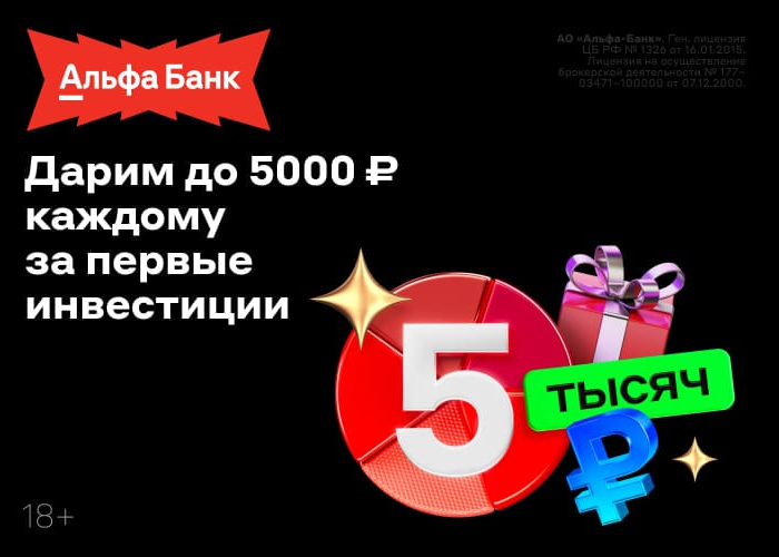 🎁 Альфа-Банк опять дарит 5 000 рублей за инвестиции