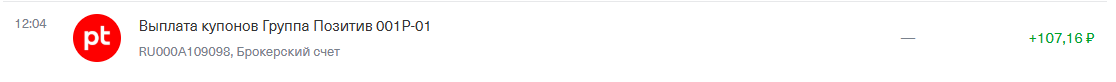 Здравствуйте. Сегодня (15 июля 2025 года) снова поступили купоны по портфелю облигаций. Средства пришли по бумагам "Группа Позитив 001Р-01" в размере 107,16 рублей за 6 штук. Сразу отмечаю в месячном плане. Ну и на сегодня все. (Не является инвестиционной рекомендацией)