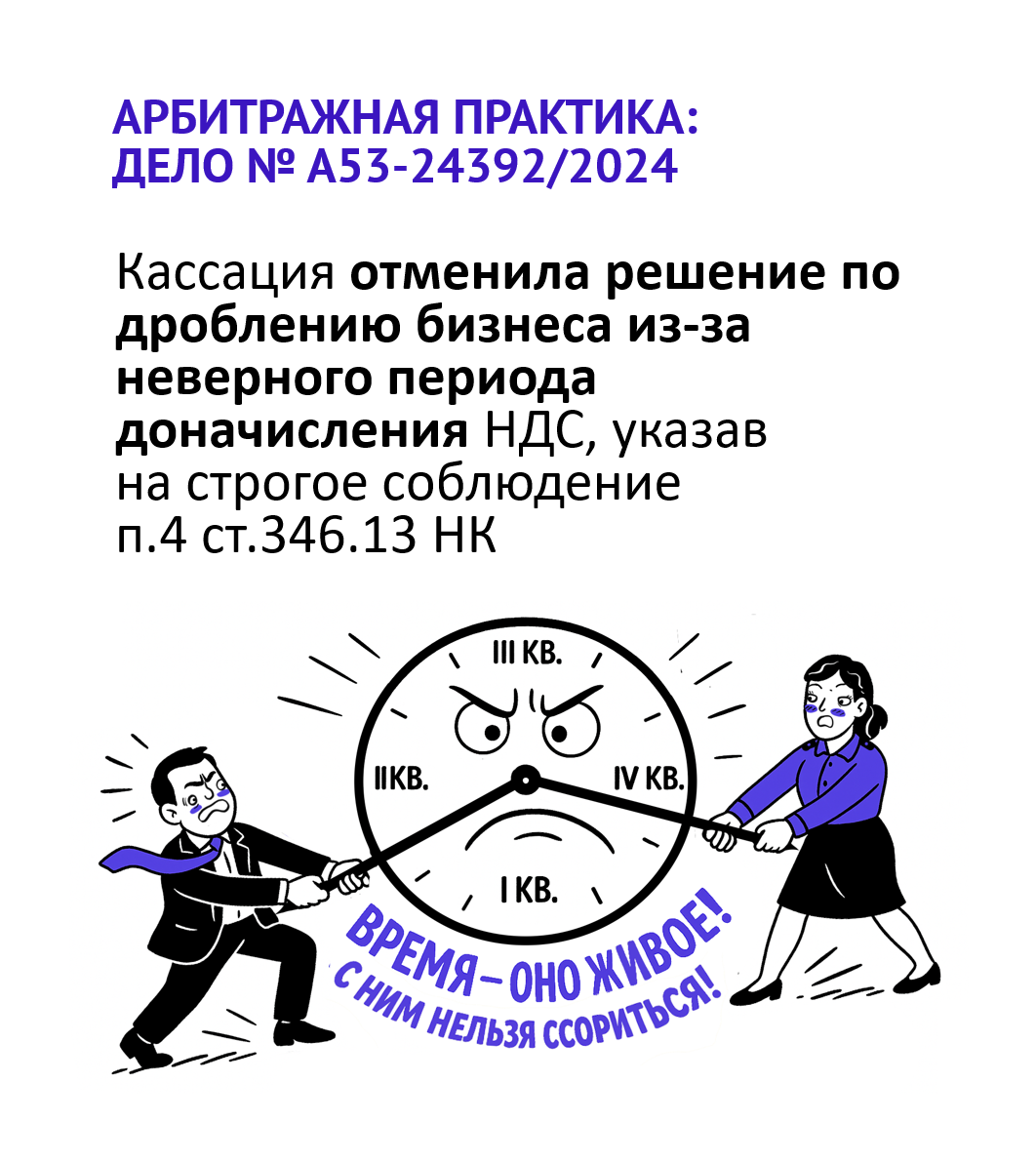 Даже при доказанном дроблении бизнеса, момент утраты права на УСН и его влияние на расчет НДС оказался ключевым в деле А53-24392/2024.