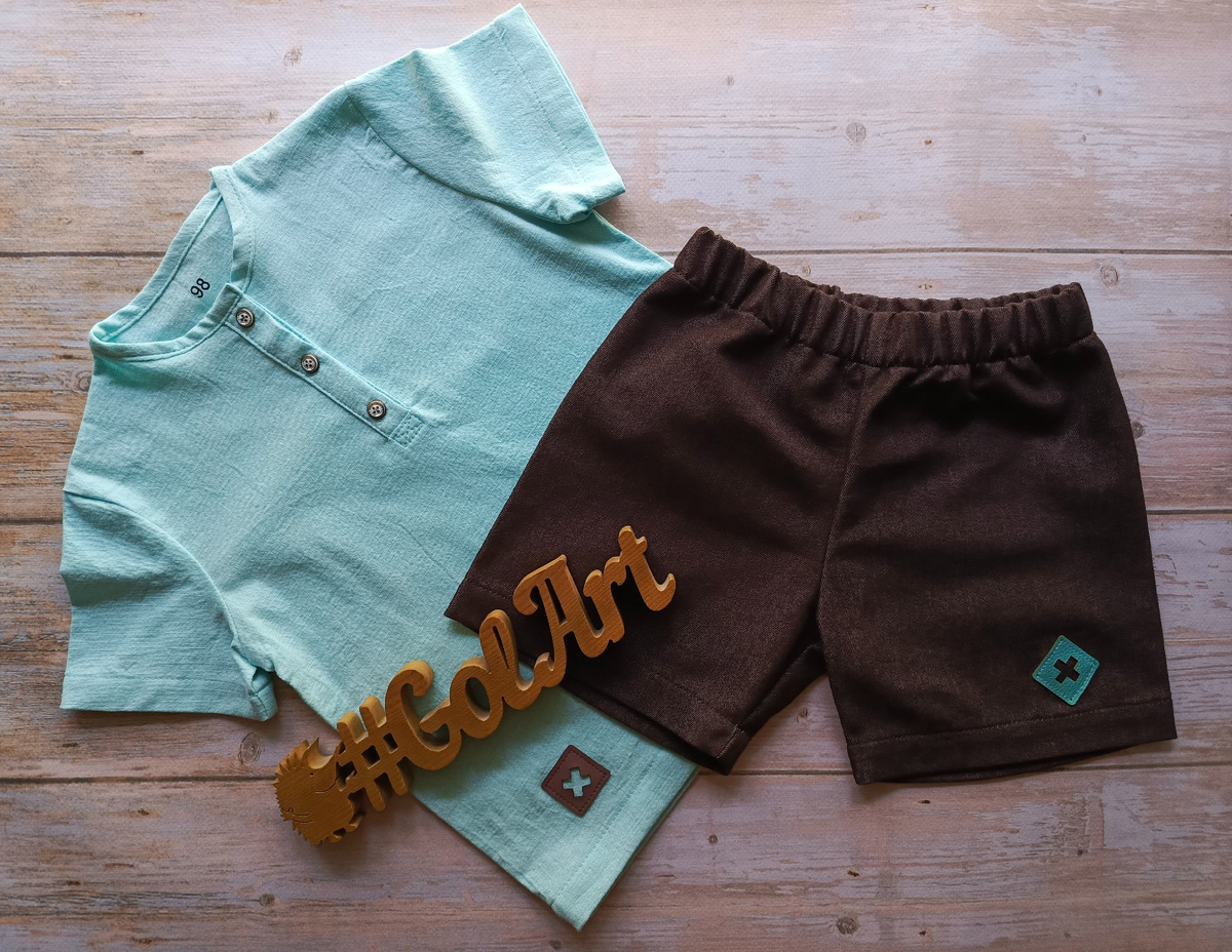 Если начать шить по этой выкройке, то остановиться уже невозможно! Сшила ещё один костюмчик для Васи. Вообще, когда я увидела этот лён на фото, глаз оторвать не могла ))) Не от дяденьки, конечно, а от рубашки 😂🙈 Долго уговаривала себя, что мне он не нужен и не вытерпела ))) Лазурный Лен, производство Беларусь. Состав 95% лен, 5% спандекс Плотность ~190гр, ширина 150см Рубашку выкроила и остался ещё отрез. И тут я поняла, что коричневая джинса смотрится с этой лазурью просто волшебно! И джинсы осталось ровно на шортики для Васи. Пришлось шить шорты и рубашку сыну ☺️ И снова выкройка "Крендель" от Желтокбэби. За счёт спандекса в составе ткань немного тянется, поэтому пришлось дублировать не только место под планку, но и низ рукавов и самой рубашки. Думаю, именно спандекс сыграл нехорошую шутку - бейка для обработки горловины, выкроенная по косой, пошла немного волной ((( Переделывать уже не стала - учту на будущее. Припуски в этот раз обрабатывала на оверлоке в три нитки. Одна катушка