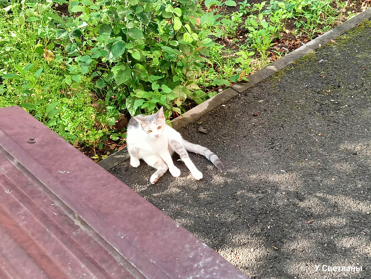 С ранего утра уже печёт. Машенька добротно расположилась на солнышке у нас под окном. Вы можете увидеть, что Машенька сидит на мокром асфальте, он мокрый, потому что всю ночь лил всеми долгожданный ливень. Люблю спать под ливнем, поэтому спалось крепко и прохладно. Утром всегда жарит, а ночи у нас прохладные и это радует, хотя бы так. Всех малышей мы покормили, пора и в магазин сходить. Вышла из дома, а Машенька уже здесь, на крыше соседского гаража. Смотрит на меня своими печальными глазками. Соседскую кошечку хотела покормить, но её хозяйка всё утро простояла у нас во дворе, болтая с соседкой. Не стала звать Маньку. Потом покормлю, успею, а пока нужно сходить в магазин. Первым делом пошла за кукурузой в овощной павильон, сегодня она уже по 30 рублей, вчера была по 35 р. Нам она вчера понравилась и я решила купить ещё. Попробую отварить её минут 40, а не 2 часа, как обычно. Мне подсказали так мои подписчики, так и сделаю. Да и действительно, не такая уж она и старая, что б так долго е