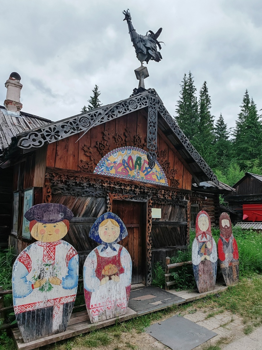 Продолжаем прогулку по этнографическому парку истории реки Чусовой. Особый интерес у детей и взрослых вызвал Балаган - своеобразный музей-театр деревянной игрушки. Он расположен в стенах избы 19 века. Основу экспозиции составляют знаменитые резные изделия из мягких пород дерева, изготовленные мастерами в посёлке Богородское. Отсюда и название — богородская игрушка. Здесь мы узнали, во что играли ребятишки в сёлах вдоль Чусовой. Более того, и сами стали участниками игры. К восторгу посетителей всех возрастов на стене есть надпись «Руками трогать обязательно». В России балаганы появились в начале позапрошлого века. Это были своеобразные театры для простого народа с представлениями комического характера. Там также демонстрировали различные чудеса: «бородатую женщину», «русалку» и тому подобные зрелища, вызывавшие интерес многочисленных гостей. Балаганы устраивались на масленицу, на Пасху, на другие праздники и в дни ярмарок. На ярмарках родители водили своих детей в балаганы. Здесь они