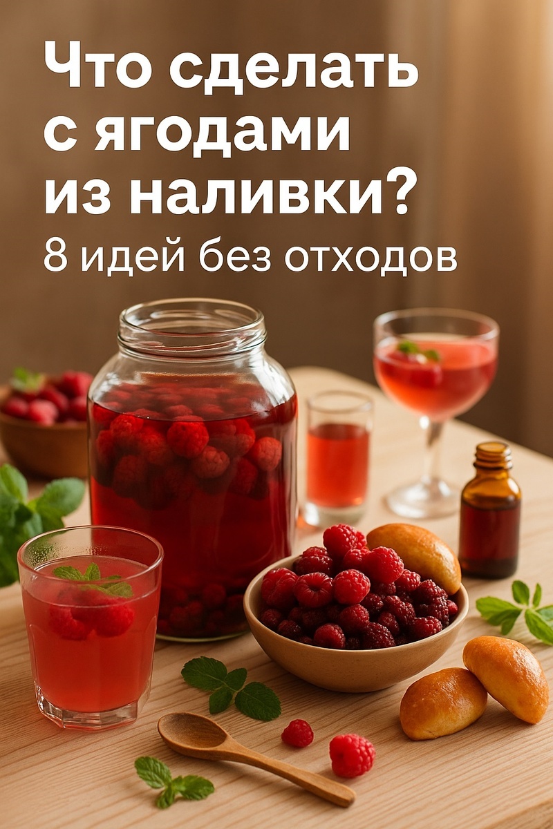 После приготовления ароматной малиновой наливки остаётся богатая вкусом ягодная масса. Не спешите её выбрасывать! Эти ягоды, пропитанные алкоголем и сахаром, — настоящий кулинарный полуфабрикат. Предлагаю 8 проверенных способов дать им вторую жизнь — от изысканных десертов до полезных заготовок.