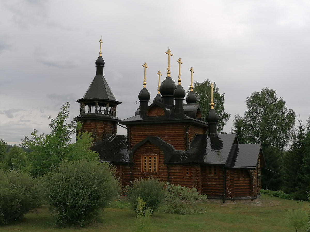 Канал "Моя Загородная Жизнь." приветствует своих читателей, подписчиков и гостей. Продолжаю Вас знакомить с храмами, которые мы посетили. Храм Архангела Михаила, церковь Симеона Верхотурского в Меркушино. "Храм Всех Святых Сибирских (Церковь Всех Святых в земле Сибирской просиявших) расположен в урочище Раскат Верхотурского района Свердловской области. Находится вблизи Симеонова камня на берегу реки Туры, на паломническом пути из Верхотурья в Меркушино. Храм Всех Святых Сибирских был освящен в 2005 году и приписан к Ново-Тихвинскому монастырю Екатеринбурга. Архитектура деревянного храма выполнена в традиционном русском стиле с пятью золотыми куполами, символизирующими Христа и четырех евангелистов. Место, где расположен храм, связывают с жизнью Симеона Верхотурского - святого, считающегося главным уральским святым. По легенде, он любил рыбачить и молиться на лежащем тут большом камне, приплывал сюда на лодке по реке от Меркушино. В XIX веке около Симеонова камня построили деревянную