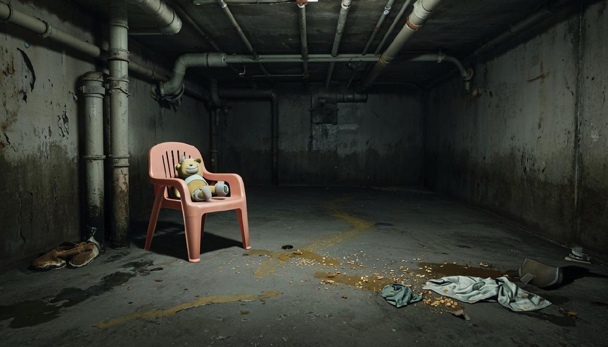 Он подсветил внутрь — и замер. На пыльном бетонном полу стоял маленький пластиковый детский стульчик. Красный, с облезшим рисунком машинки. Рядом — плюшевый заяц с оторванным ухом. Стул был чистым. На нём не было пыли, хотя вокруг всё покрыто толстым слоем грязи и паутины.