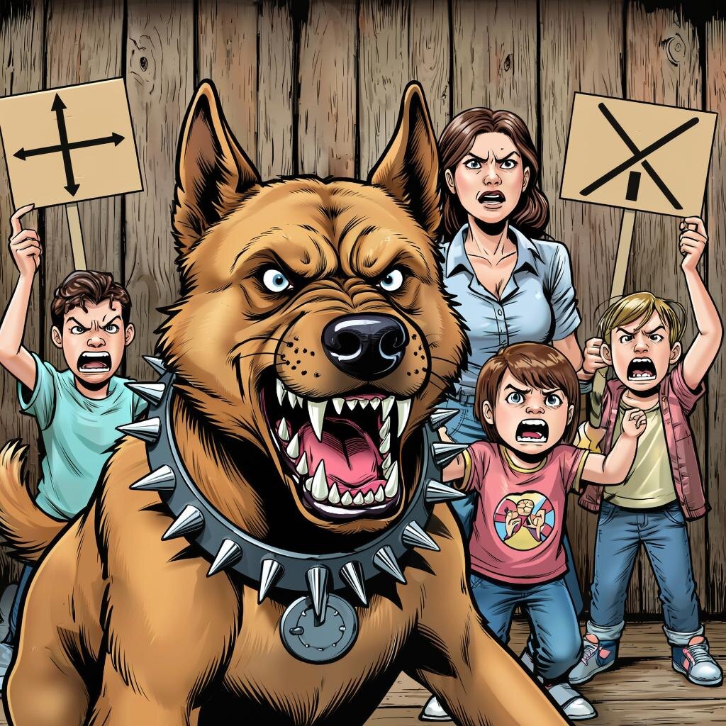 Осторожно: злая собака и её не менее злые хозяева — комикс-предупреждение с юмором! 🐶⚠️😄