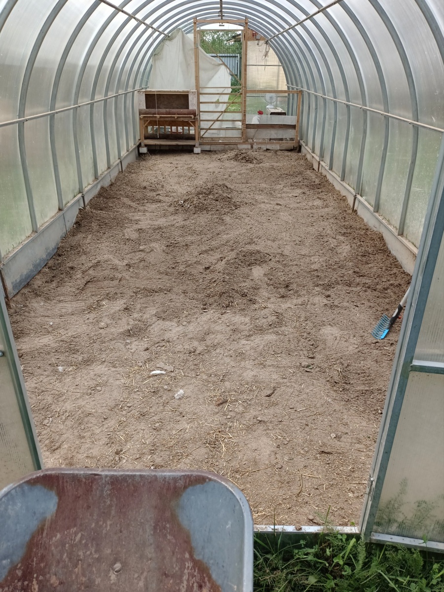 Убирать подстилку с площади 24м² лишь визуально кажется быстрым, и делать то особо нечего. Дач это так, если лишь соломка лёгкую, последнюю, сгрести граблями и вывезти. А тот панцырь, что за зиму утрамбовался пробить довольно тяжко оказалось.