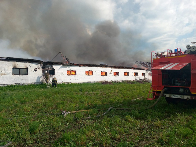 Бушевавшая в конце прошлой недели стихия не только ураганом прошлась по Льгову и ряду других районов. В селе Боево на территории Донского сельсовета в Золотухинском районе во время грозы произошел серьезный пожар на объекте АПК. Как сообщили в ГУ МЧС по Курской области и региональной противопожарной службе, ЧП произошло воскресным вечером 13 июля. Предположительно, в результате попадания грозового разряда в здание фермы произошел пожар. Сообщение об этом в 16:26 поступило в местную ПСЧ. На место выехали пожарные бригады п. Золотухино и местечка Свобода, другие оперативные службы. Открытым пламенем горело складское здание по всей площади – кирпичное строение, где были складированы тюки с сеном. Пожар потушили. Однако помещение склада, судя по фотографиям с места, выгорело вместе с сеном. О пострадавших не сообщалось. Сумма ущерба выясняется. Сергей МАТВЕЕВ, фото противопожарной службы Курской области Постоянный адрес статьи на сайте «Друг для друга» ~ https://dddkursk.ru/number/1603/cri