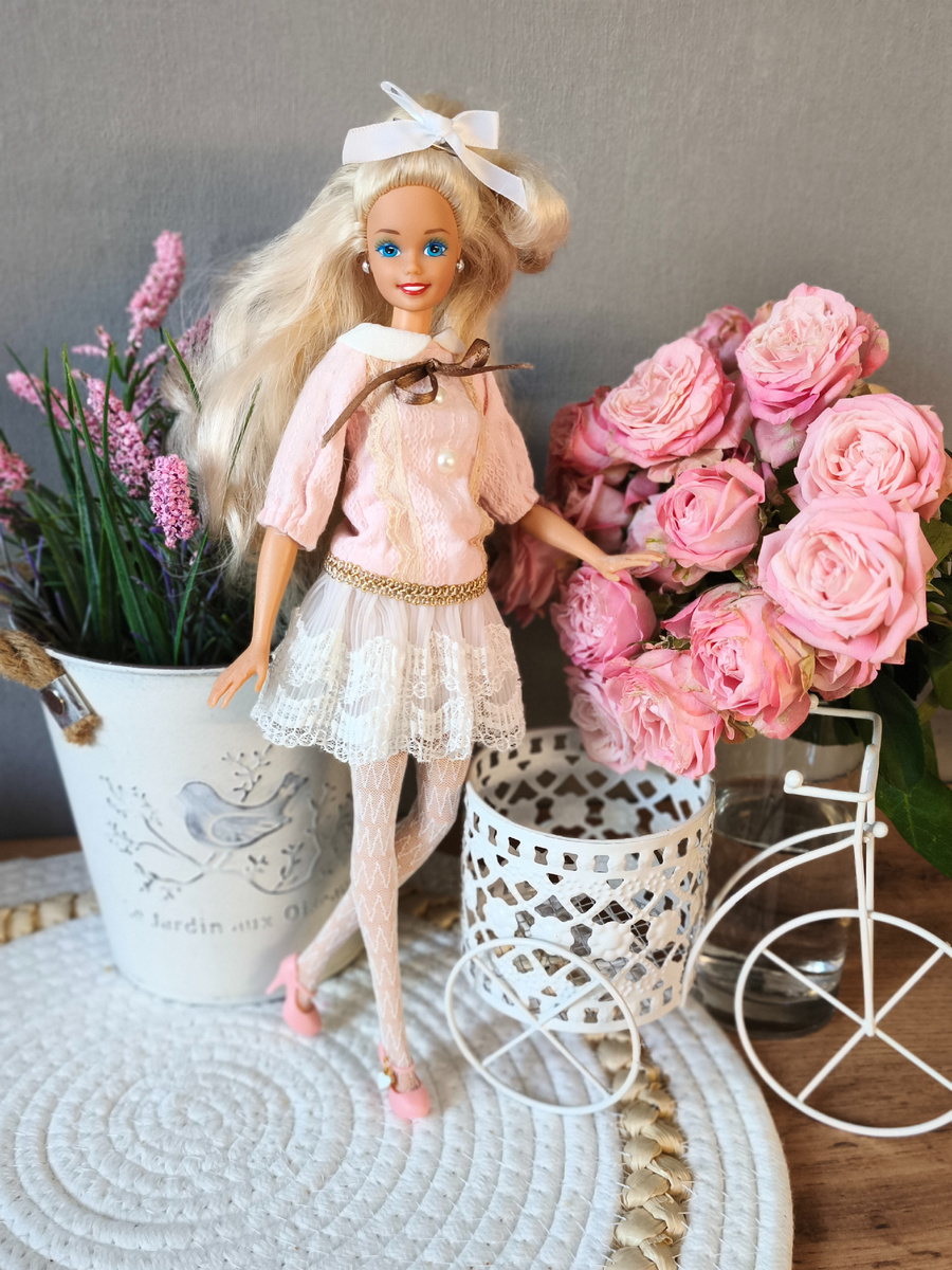 С интересом слежу за движем "Куклы на стиле" от автора канала "Люди, которые играют в куклы", в котором предлагается наряжать кукол согласно определённому стилю. Участвовать, к сожалению, не всегда успеваю, только барби-кор успела охватить. А сейчас заинтересовал шебби-шик, потому что у меня есть платье, которое отлично в него впишется. Долго оно лежало, вроде и надеть некуда, и пристроить куда-то жалко, а теперь пригодилось) На роль модели пригласила Саманту. Ее хвостик (который я все хочу распустить, но руки не доходят) украсили бантиком. Посколько платьице короткое, дополнили его колготками и недавно полученными с али туфельками с игривыми подвесками. Немного деталей. Для оформления подошли цветы - живые и искусственные, и моя любимая подставочка в виде велосипеда. Спасибо Саманте за демонстрацию наряда!) И вот эта зефирка - на десерт)) 🍥🍥🍥