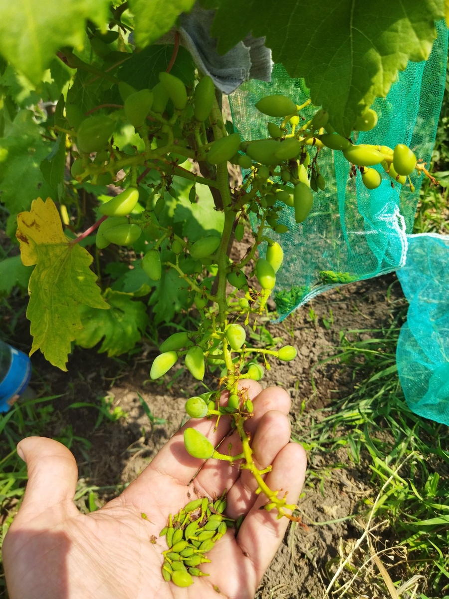 Добрый день подскажите почему осыпается ягоды в грозди. Сорт винограда Виктор. Кусту 3 год на листьях болячек невидно.