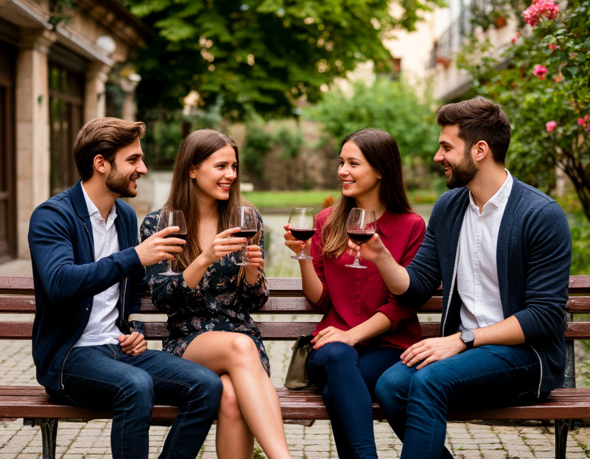 Парни подняли бутылки и сдвинули их разом. Юрка произнёс тост: "За прекрасных дам!" Девчонки смущённо заулыбались и едва пригубили из своих стаканов, в которые ребята налили девушкам вино.