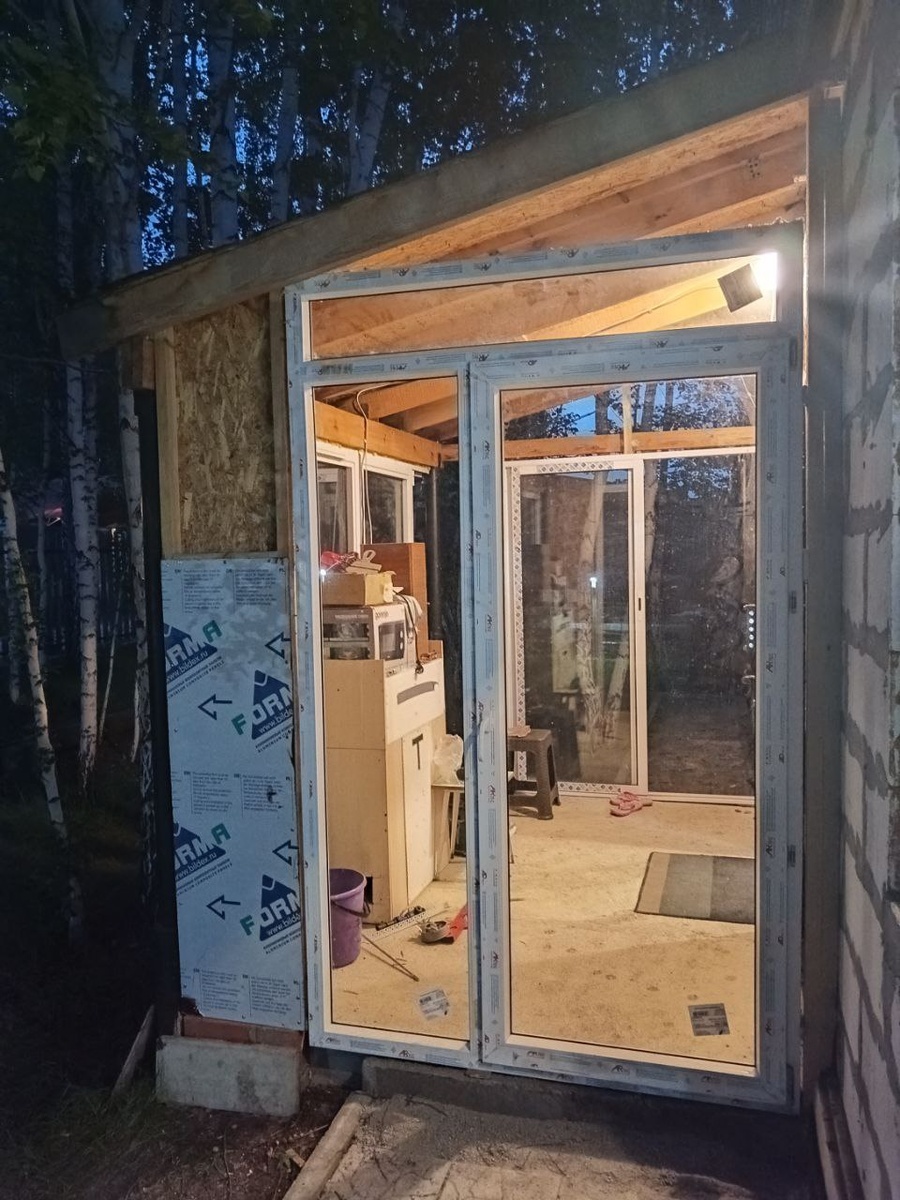 Повесил дверь, зашил временно проём