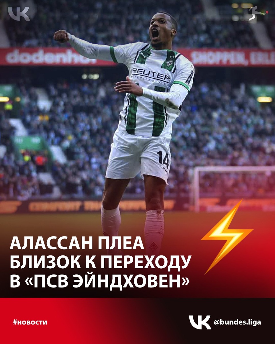 ⚡ Sky Germany сообщает, что Алассан Плеа близок к переходу в «ПСВ Эйндховен». Игрок «Боруссии» из Мёнхенгладбаха один из самых стабильных игроков клуба в последние годы. В прошлом сезоне он забил 11 голов и отдал 4 результативные передачи. Контракт Плеа с нынешним клубом действует до 30 июня 2026 года ✍