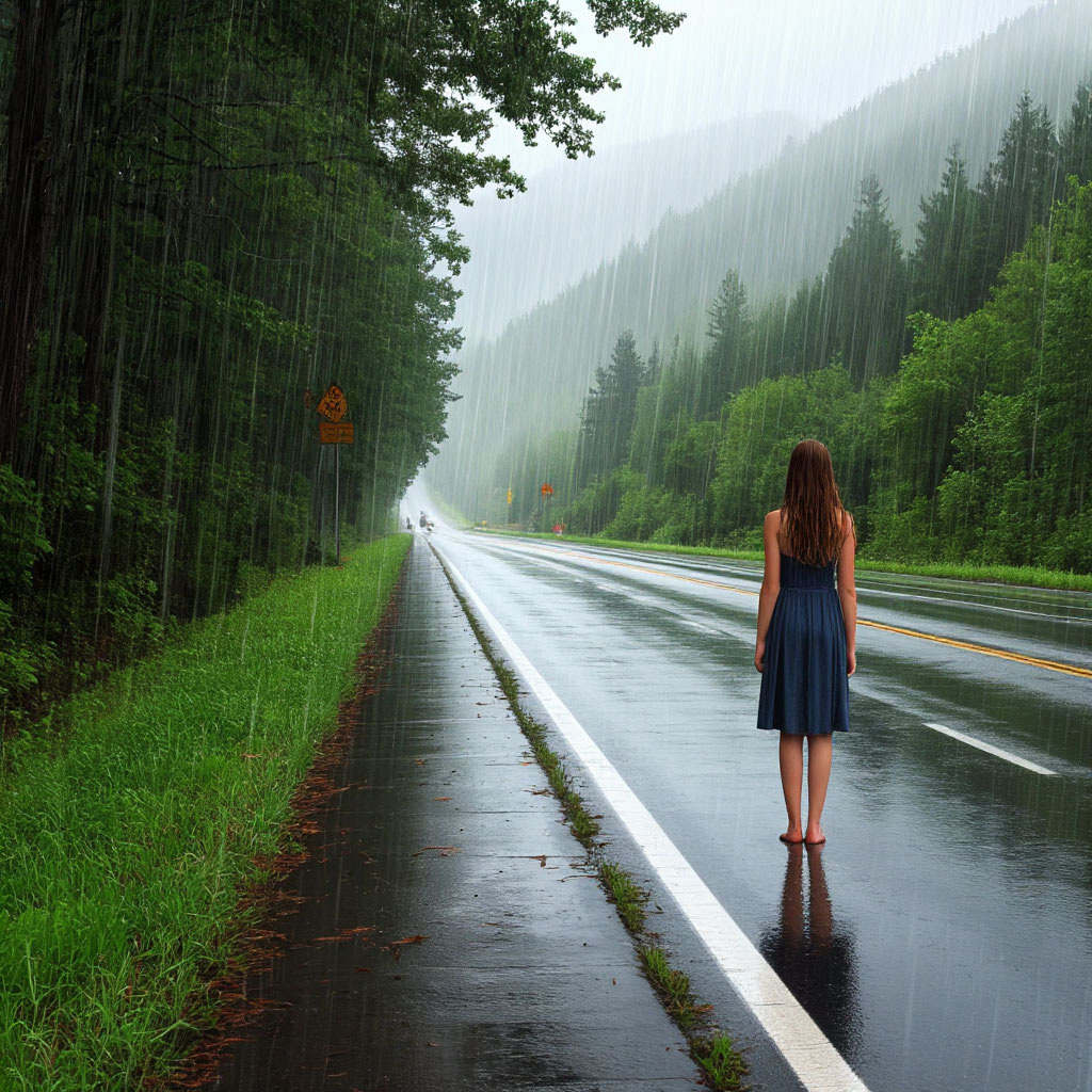 Внезапно, в свете фар, я увидел силуэт. Он стоял на обочине, под жалким навесом старого дерева, промокший до нитки. Это была девушка. Ее длинные темные волосы прилипли к лицу, а тонкое платье, казалось, вот-вот порвется от ветра.