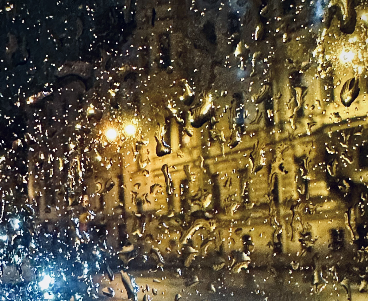 Дороги блеснули, как свежезаточенные клинки: каждый прожектор, каждая фара рассыпала по ним оранжевое крошево бликов. Лужи начали соединяться, забивая ливнёвки, и в считанные минуты несколько центральных магистралей превратились в неглубокие, но стремительные речки. Ветер перешёл на хриплый свист: он тянул за собой баннеры, срывал плохо закреплённые вывески, шлёпал их о фасады.