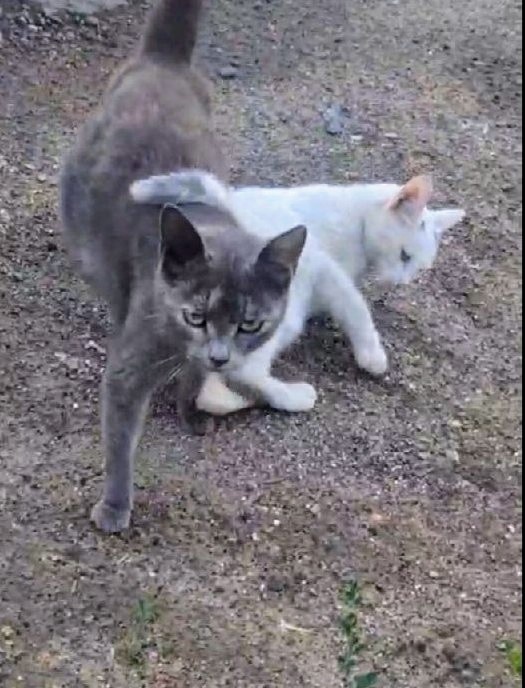 Обе красивые (белая и трёхцветка на голубом), похоже, что обе молодые. Чистые. Клинически здоровы. Контактные.