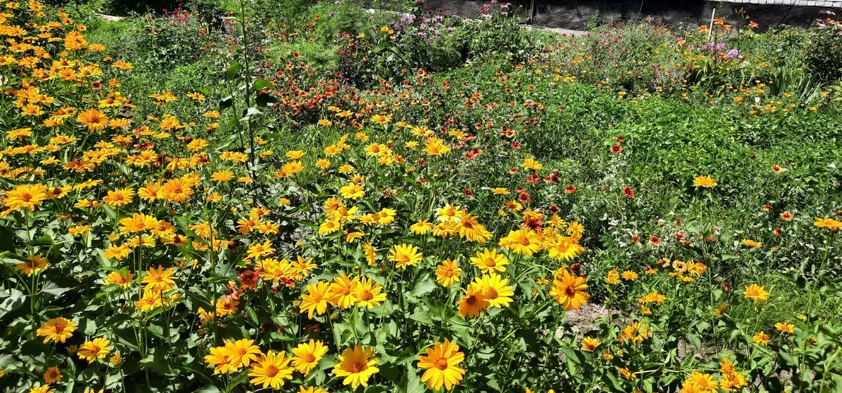 Я не садовник и не цветочник, но когда вижу газоны во дворах и вдоль домов, усаженные цветами, получаю огромное удовольствие и радость! В этот раз моё внимание привлекли яркие жёлтые цветы: Почему-то я решила, что это топинамбур) Топинамбур, или земляная груша, — это многолетнее растение семейства астровых. Его клубни содержат большое количество инулина — вещества, которое способствует улучшению обмена веществ и снижению уровня сахара в крови. Топинамбур можно употреблять в пищу как в сыром, так и в приготовленном виде. Вкус и запах топинамбура могут варьироваться в зависимости от способа приготовления. Некоторые описывают вкус топинамбура как сладковатый и слегка ореховый. Запах обычно нерезкий, может напоминать вкус корней овощей. Сырой топинамбур имеет более яркий вкус по сравнению с приготовленным. Но цветы, повстречавшиеся мне, хотя и тоже и семейства Астровых, оказались совсем не топинамбуром... Гелиопсис! — от греческих слов helios — солнце и opsis — похожий, что отражает его сп
