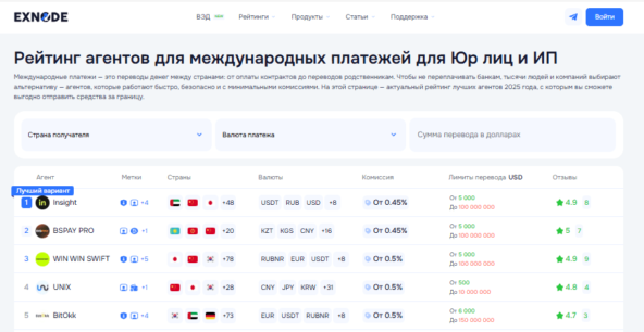 Сегодня на рынке появляются платформы для трансграничных платежей, которые помогают обходить сложности с комплаенсом, упростить документооборот и сократить сроки проведения переводов. Их можно подобрать на сайте-мониторинге Exnode или на любом аналогичном сервисе. Использование агентской модели в условиях санкций позволяет российским компаниям продолжать расчёты с Азией, Ближним Востоком и другими регионами без риска блокировок.