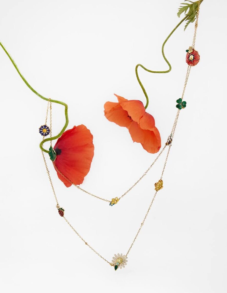Лето, навечно зафиксированное; как василек между страниц, случайно обнаруженный при повторном знакомстве с книгой, которую читал в разгар июля. В серии Liza Borzaya «Летняя поляна» мы обратились к ярким краскам природы, чтобы увековечить их, признаться в любви к каждому цветку и шмелю, к каждой божьей коровке и ягодке. Так в мастерской появился наш сотуар из желтого золота 750 пробы, желтых, коньячных и черных бриллиантов, сапфиров, цаворитов, черного жемчуга и гильошированной горячей эмали. Носить его можно по-разному: в несколько слоев (как модели на минувшем показе Dior) или распустив свободно. Украшение для тех, кто не хочет, чтобы лето заканчивалось.