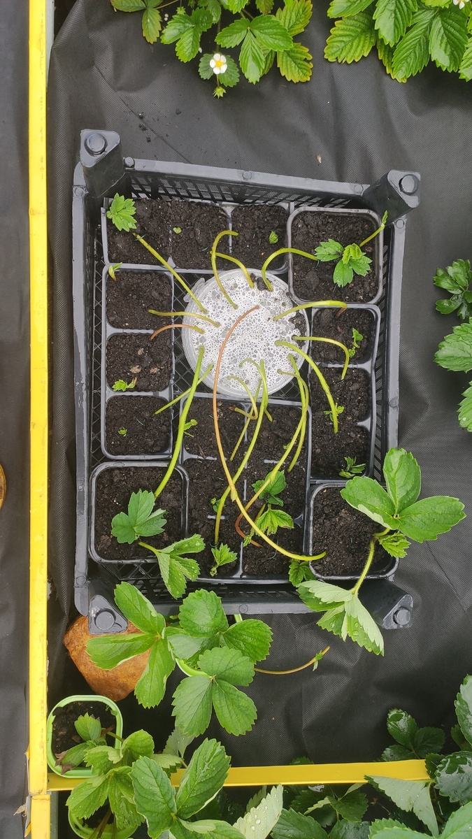 Но с утра случилось продуктивное чудо: я всё-таки посадила клубничные усы! Метод со стаканчиком воды (не путать с методом стаканчика вина) имеет очевидные плюсы: