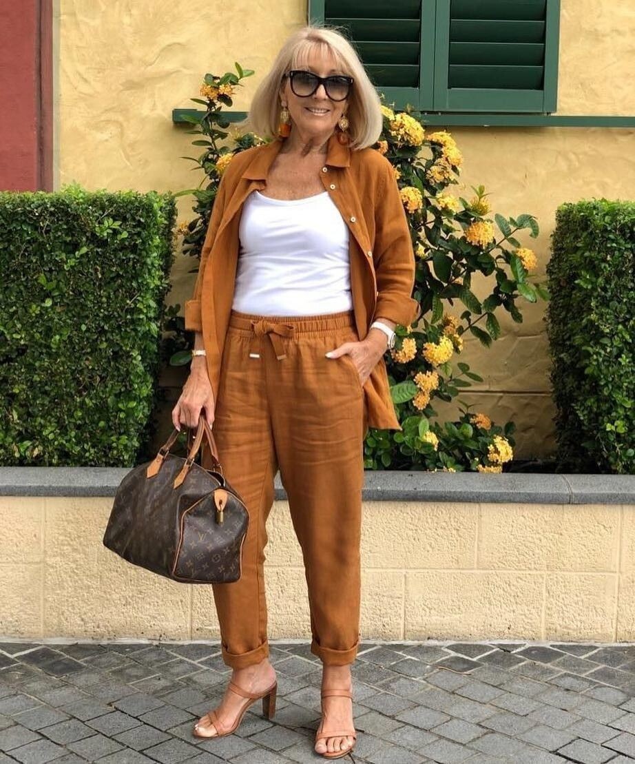 Коричневый цвет – главный цвет летнего сезона 2025 года. Летние наряды в этой цветовой гамме представляют собой классическую роскошь и стиль, они универсальны и хорошо сочетаются с одеждой в других, как базовых, так и ярких оттенках. Образы в коричневом цвете задают тон летнему стилю, они естественны, натуральны и красивы. 1. Легкий льняной кофейно-коричневый костюм из зауженных брюк, подвернутых на щиколотках, с поясом на резинке, и удлиненной рубашки с рукавами, подвернутыми до локтей, оставленной не застегнутой – наряд в трендовой цветовой гамме, который в летний сезон и стильно выглядит, и является комфортным в носке. Оттенить цвет костюма можно лаконичным белоснежным топом, а гармонично дополнить – сандалиями в тон на умеренно высоких устойчивых каблуках. 2. Сочно-коричневый ансамбль, составленный из широких брюк-палаццо классического кроя и рубашки, у которой можно расстегнуть пару верхних пуговиц и подвернуть рукава, а также свободно заправить ее за пояс, можно носить в самую жа