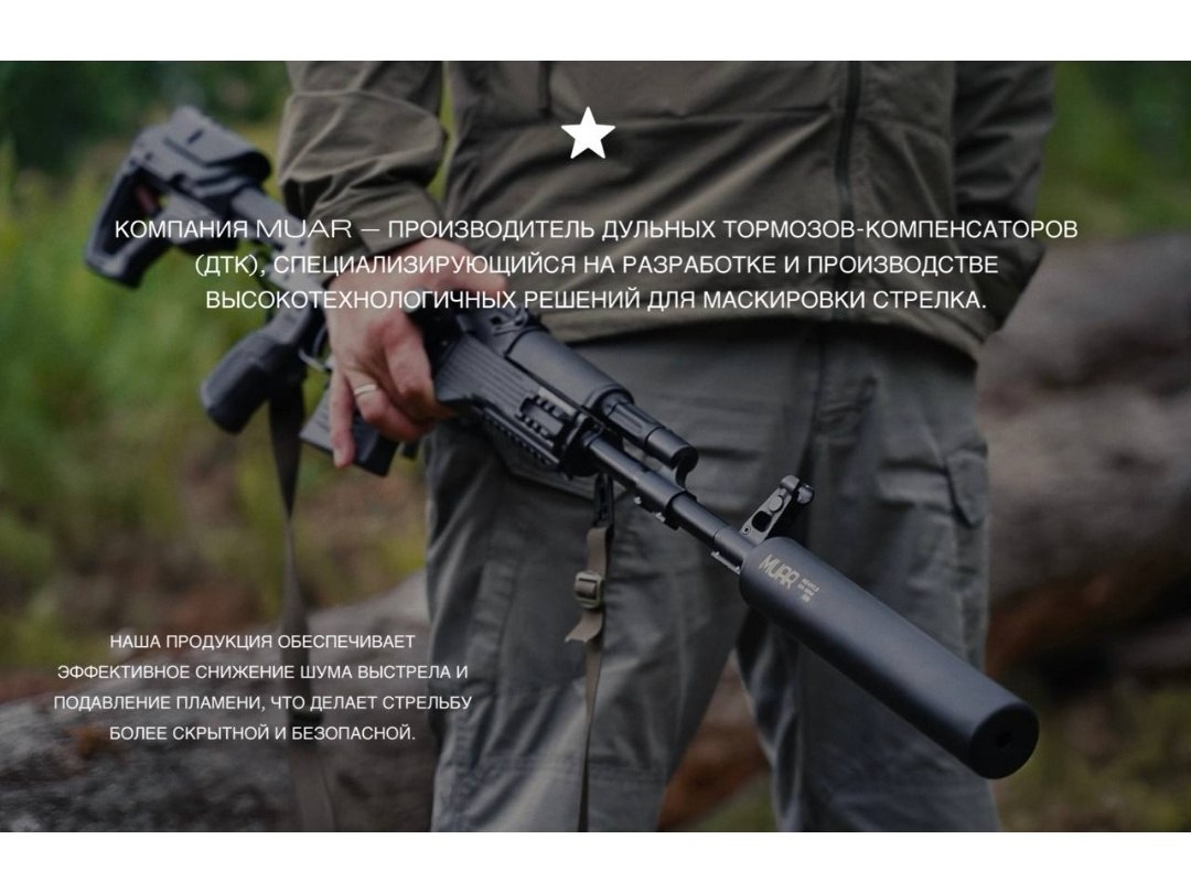 Титан — все элементы ДТК MUAR изготовлены из титана различных жаростойких марок, что обеспечивает малый вес, минимальное влияние на СТП и повышает разворотистость оружия — меньший момент инерции на конце ствола при переносе огня. Компактные размеры — ДТК закрытого типа MUAR не перекрывает поле зрения целика/мушки/оптических приборов на карабинах с низкой прицельной линией. Высокая коррозионная стойкость — надежность и долговечность титана в любых погодных условиях: при резких перепадах температуры и влажности, а также при воздействии агрессивной среды пороховых газов. Антибликовое термостойкое покрытие Cerakote — жаропрочное и износостойкое керамическое покрытие, обеспечивает долговечность и эстетичный внешний вид изделия ДТК MUAR. Точность и повторяемость — отличная повторяемость СТП при съеме и установке ДТК MUAR.
