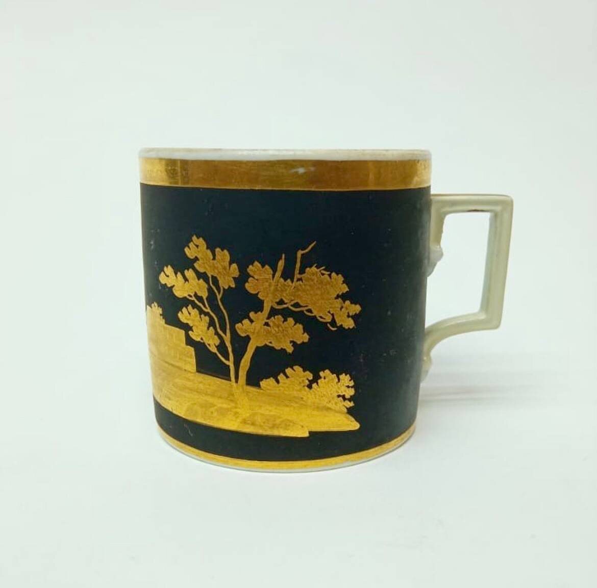Чашка, которая есть у меня изготовлена из фарфоровой массы хорошего качества. Крытье матового чёрного цвета и золочение свидетельствуют о достаточно высоком профессионализме исполнителей.
