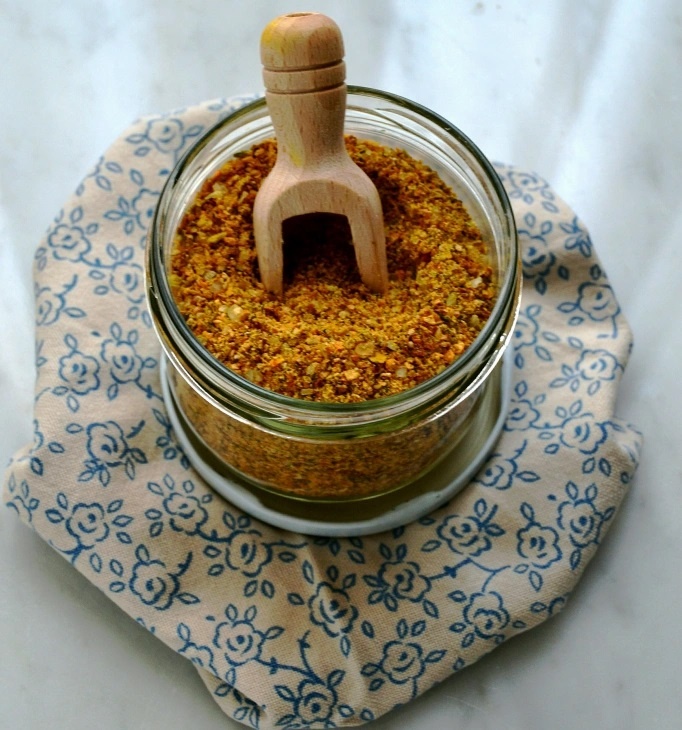 По сути это будет домашний гранулированный овощной бульон. Его можно добавить в кипяток, бросить в него горсть вермишели и вот у вас уже постный супчик готов. Либо всыпать в мясной бульон, добавив ему еще больше вкуса и аромата. 2 стебля сельдерея, включая внешние части и листья 3 моркови (вместе с кожурой) 2 шт. репчатого лука среднего размера 1 пучок стеблей петрушки (без листьев) 180 гр. крупной соли 1 чайная ложка куркумы 1 щепотка молотого имбиря Сначала тщательно вымойте, потрите губкой и высушите овощи, удалите волокнистые волокна с сельдерея, а затем крупно нарежьте все. Взвесьте овощи (400 гр. у меня) и добавьте половину веса крупной соли (или меньше, если вы, как и я, не любитель соленого).