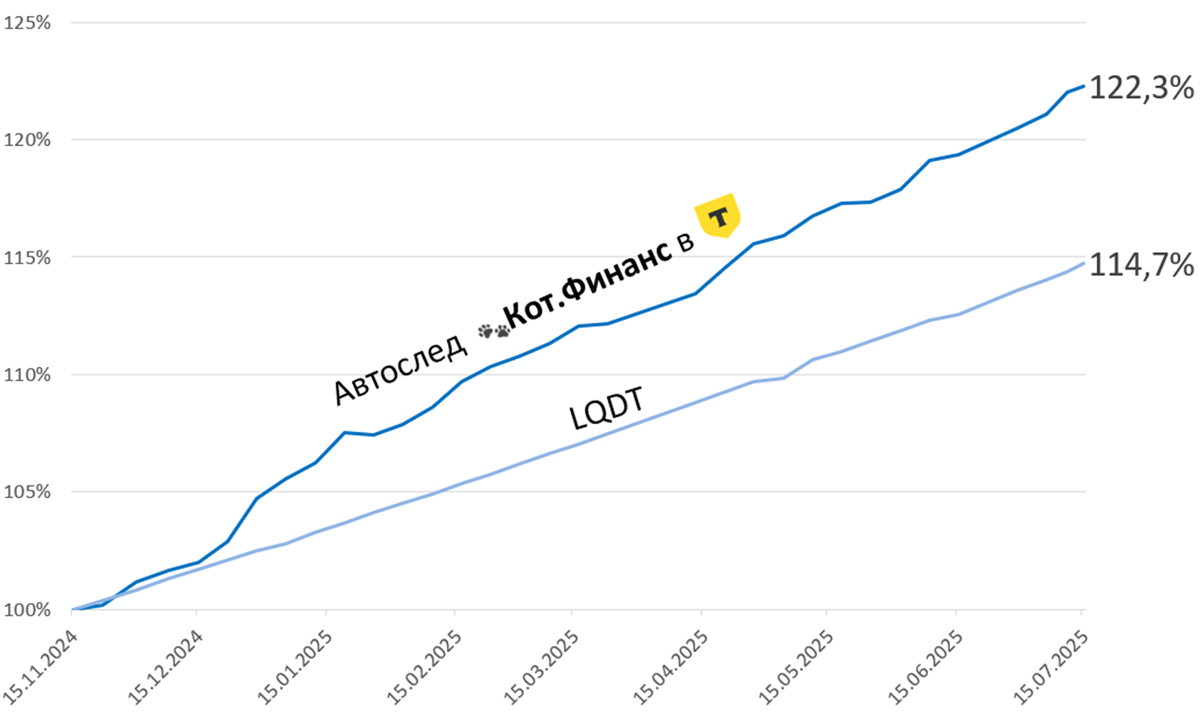 Создавая автослед «Лучше, чем LQDT» - мы вдохновлялись высокой доходностью и минимальной волатильностью фондов денежного рынка. Вот он идеальный инвест.инструмент – завтра дороже, чем вчера. Но мы не гонимся за доходностью любой ценой. Нас больше интересует стабильность результатов, ведь однажды ставки снизятся и 20-30% годовых в облигациях показать будет невозможно. А умение обыгрывать бенчмарки – останется ценным навыком Обратите внимание, что мы не подбирали идеальную (для нас) точку старта, мы взяли самое начало. Вспомните середину ноября: 🔹флоатеры падали, как в последний раз 🔹все ждали роста КС до 23% в декабре и попутно распродавали долг строительных компаний 🔹гос.облигации продолжали снижение 🔹доходности продолжали расти (а цены падали и в следующие недели) Понимая, что на рынке облигаций нельзя повторить денежный рынок буквально, мы выбрали самый близкий инструмент – сверх-короткие облигации: 🔹погашение от 2 до 8 мес., дюрация не более полугода 🔹90% портфеля в рейтинге