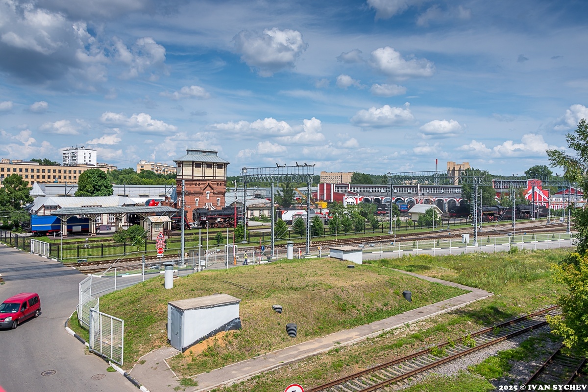 Тут как сложилось. В день, когда Москву накрыло «Всемирным потопом», еще за несколько часов до начала стихийного бедствия, довелось мне побывать в северной части столицы. И раз уж я там оказался, то в жару, как ни странно, мне оказалось не лень сделать крюк в сторону исторического депо Подмосковная. Ну как крюк? Просто было несколько вариантов поехать домой, и через Красный Балтиец (Подмосковную) получалось на полторы-две тысячи шагов длиннее. Но вот я таки выбрал паровозное депо. И в предвкушении «улова» поднимался на длиннющий пешеходный мост через пути. Однако… Впрочем (вы знаете) обо всем по порядку. 1. Для начала я разочаровался при виде почти пустых путей этой станции-музея. Куда-то делось большое количество паровозов и пропал даже давно там находящийся электровоз серии ЧС2. 2. При ближайшем рассмотрении оказалось, что на путях почти все паровозы относятся к одной серии – серии «Л», или, как ее называют неофициально, «Лебедянка». Вплотную к зданию вокзала станции стоял паровоз Л-