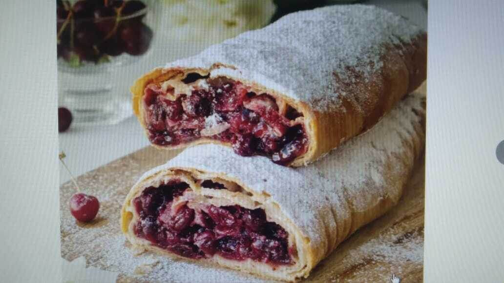 Рецепт штруделя с вишней, которого не страшно попробовать при любой диете. Кто не знает что такое штрудель? Это знаменитое на весь гастрономический мир немецко-австрийское лакомство - рулет из тончайшего теста с хрустящей корочкой и сочной начинкой. Его готовят с начинками из слив, груш, мака... но существуют варианты с мясом, капустой и грибами.