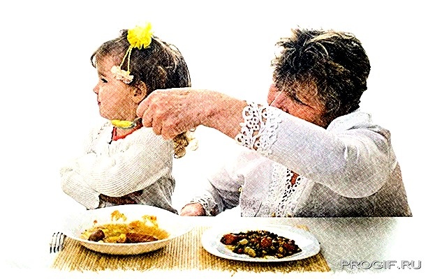 — Пока не доешь — никуда не пойдёшь! — строго повторяла она, пытаясь засунуть ложку в плотно сжатый рот внука.