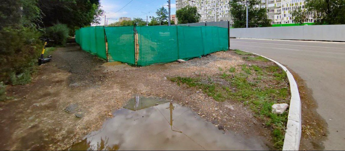 Речь идёт об участке возле пешеходного перехода, который на данный момент ремонтируется.
