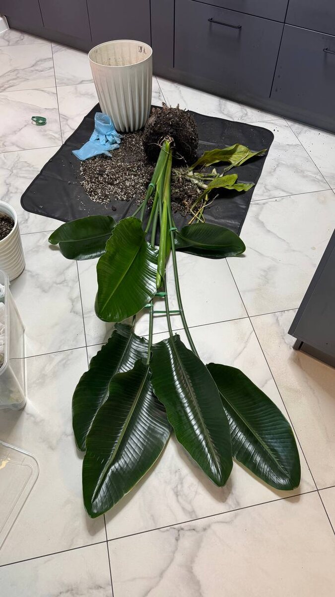 Пересадила 🥳 На ближайшие пару лет про стрелицию можно забыть) Заодно ещё и искупала всех, кто стоит в этом уголке. На сегодня хватит, завтра займусь фитостеной 🫠 Yu_jungle 🌱