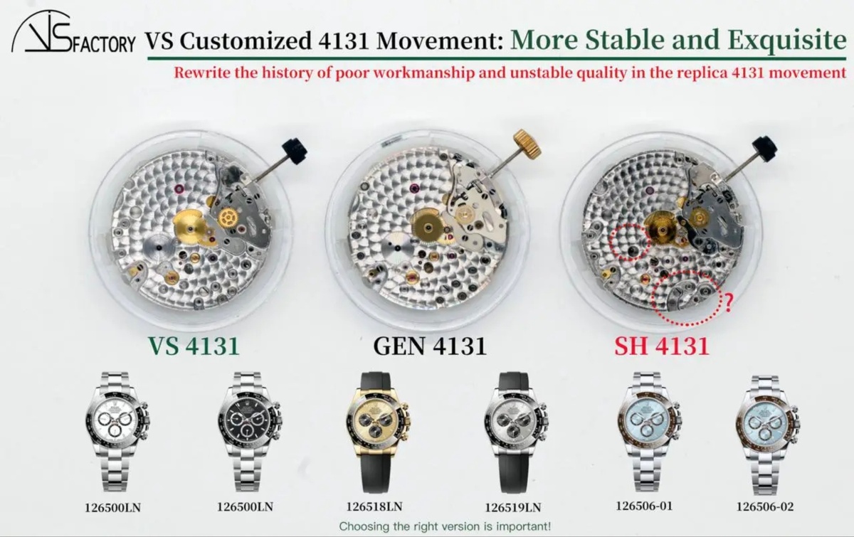 Компания VSF предоставила исчерпывающую информацию о механизме VS4131, установленном в часах Daytona 1265xx, основываясь на своих знаниях и разработках VS4131.