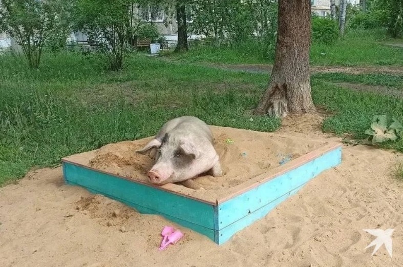 Детские площадки в Ревде, 80-тысячном городе в 45 километрах от Екатеринбурга, пали под натиском обнаглевших, толстых, некультурных особей! Малышей играть в песочницу не пускают - сами в ней сидят, творят непотребства! Качели тоже облюбовали. Одно слово - свиньи! Нет, мы не про любителей попить пивка там, где не положено, мы буквально про свиней. Этим летом Ревда прославилась на всю страну нашествием поросят. Нет, не к такому нас готовила советская мультипликация. Где же, простите, воспитанные поросятки, вроде Фунтика, ну или Хрюши, на худой конец? ХРЮШКИ БЕСЧИНСТВУЮТ Впрочем, совсем уж невоспитанными их назвать нельзя. В море видео и фото с ними, завирусилось одно, где хрюшка переходит дорогу как полагается - по полосатому переходу на светофоре. Водители только смотрят и диву даются: «Это ж когда они ПДД успели изучить?» Было когда! Как говорят местные, это сейчас свинки словили хайп, а так-то они топчут копытцами городские дворики и проезжие части уже года три, все больше и больше у