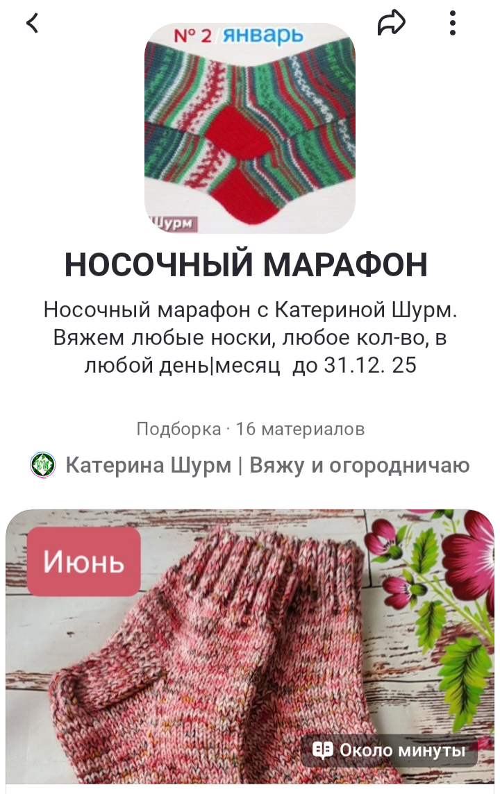 Друзья, доброе утро☀️ Сегодня о моем Носочном марафоне. Это еще один носочный марафон к моим другим носочным проектам. Напомню - есть игра-авантюра «Уютный носочек», марафон Scrappy socks (с тремя наминациями: scrappy socks, полосатики и Хеликс) И вот чтобы не путать участниц и желающих присоединиться этот Носочный марафон я переименовала в Носочный марафон 365 дней с Катериной Шурм Вот тут можно прочитать как вязать, как участвовать. Моя самая первая статья на эту тему⤵️ Вот тут видео где я подробно рассказываю об участии и приглашаю новых участниц и все подробно объясняю ⤵️ Подборка этого марафона 365 тут в дзен⤵️ Уже связано много носочков и мной, и участницами. Присоединиться можно в любой месяц, связать любое количество носков. Показывать фото в комментариях к этому марафону. Я делаю скрины и по окончанию месяца показываю что сама связала и какие носочки связали участницы. Присоединяйтесь! Участие совсем не сложное и Вам даже не обязательно быть блогером. Вы можете сфотографир