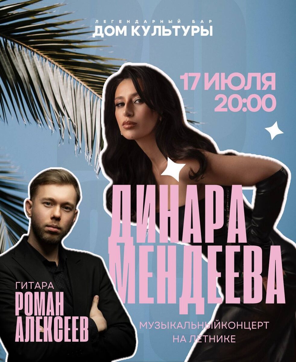 Летний акустический концерт под открытым небом 🗓️ 17 июля 20:00 📍бар Дом Культуры Выступит дуэт Динары Мендеевой и Романа Алексеева (гитара). Будет много живой музыки: тёплые каверы и душевные авторские песни — всё, чтобы просто сесть, расслабиться и наслаждаться вечером. 🏷️ 500₽ Бронирование мест у @dinaramendeeva #17июля25