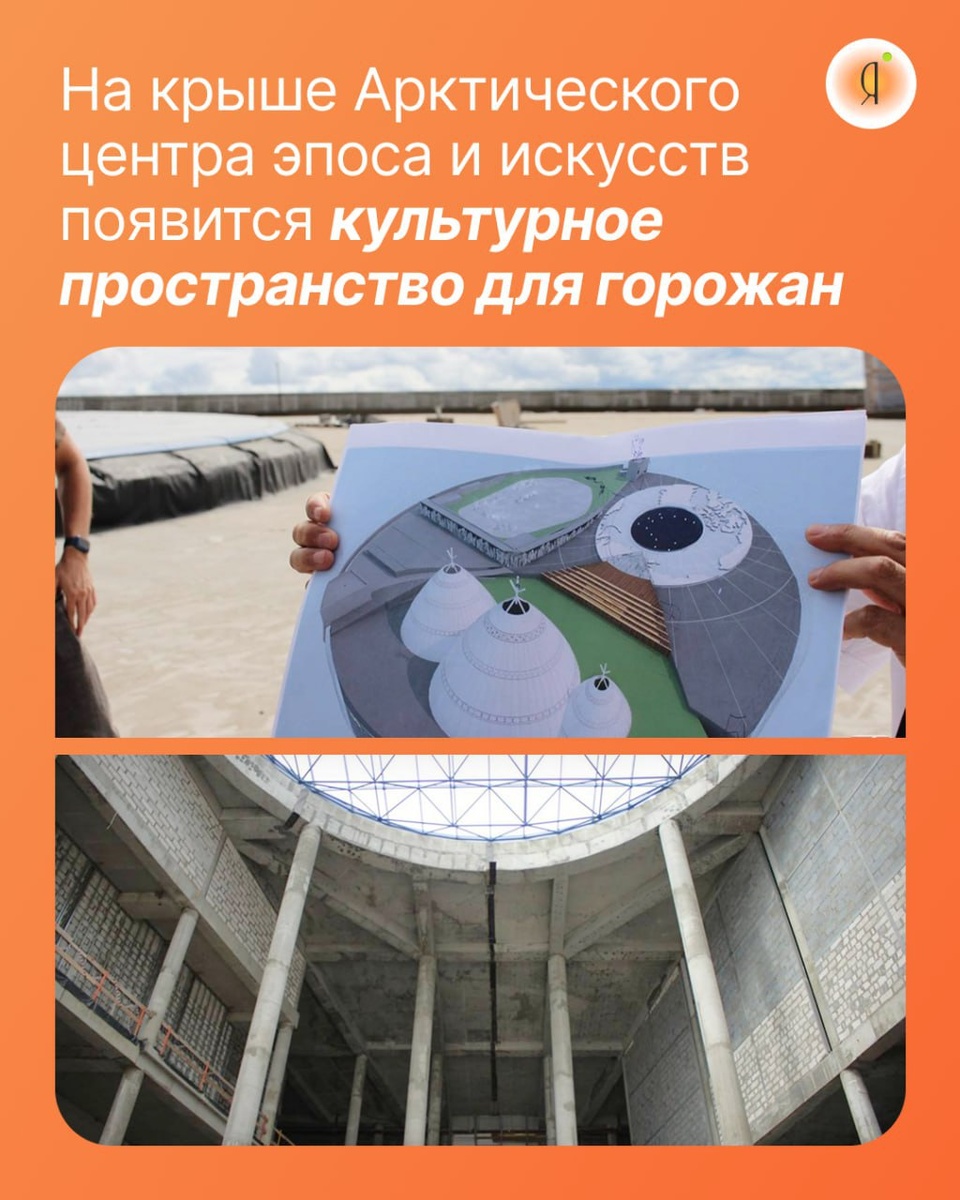 В сентябре этого года завершится строительство Арктического центра культуры и эпоса. В самом здании разместятся филармония, два театра и выставочные галереи, а на крыше появится уникальная общественная площадка.