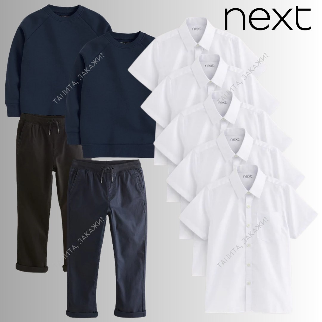 Next Рубашка набор 5 шт для мальчиков от 4400₽ до 7800₽ + доставка 3-17Y Свитшот набор 2шт для мальчиков от 2700₽ до 5200₽ + доставка 3-16Y Брюки набор 2шт для мальчиков от 5600₽ до 7800₽ + доставка 3-16Y 📩 @tanita_sadovnik 🚚 Доставка 4-6 недель 📦 ✅ 100% оригинал 🇺🇸