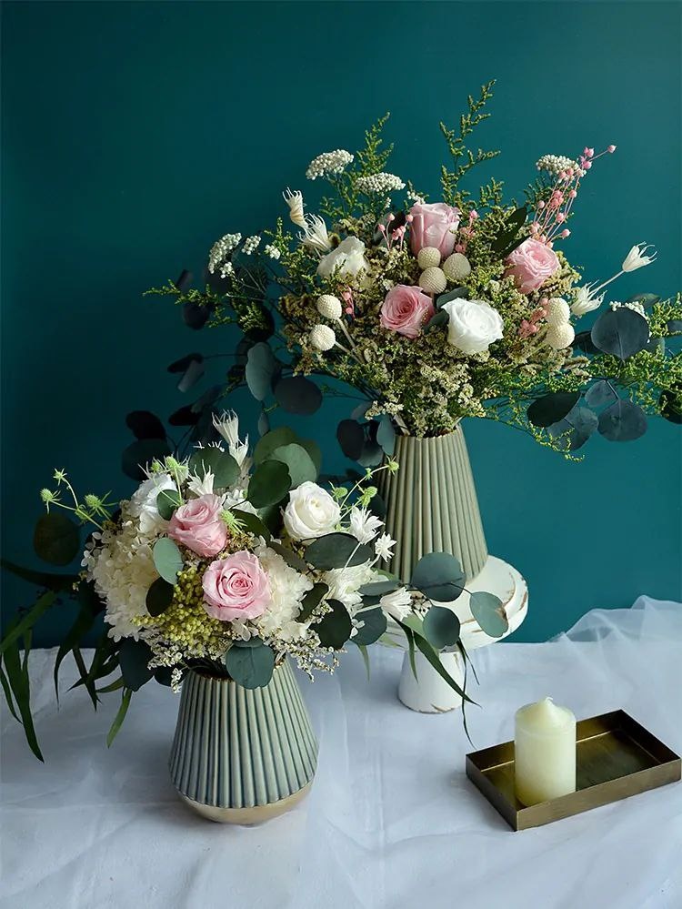 Идеальный букет, который будет радовать вас годами! Нежные розы, воздушный эвкалипт, пышная гортензия и другие природные элементы в благородных оттенках. Без воды, без ухода — только красота и уют. 💛