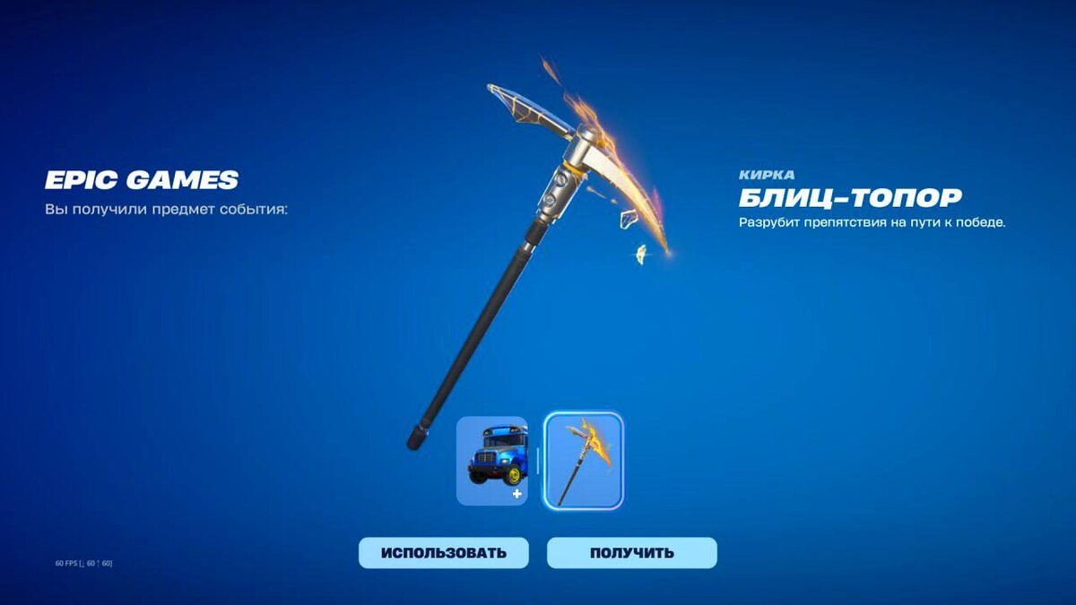✅ Epic исправили ошибку, и выдали всем игрокам кирку «Блиц-топор