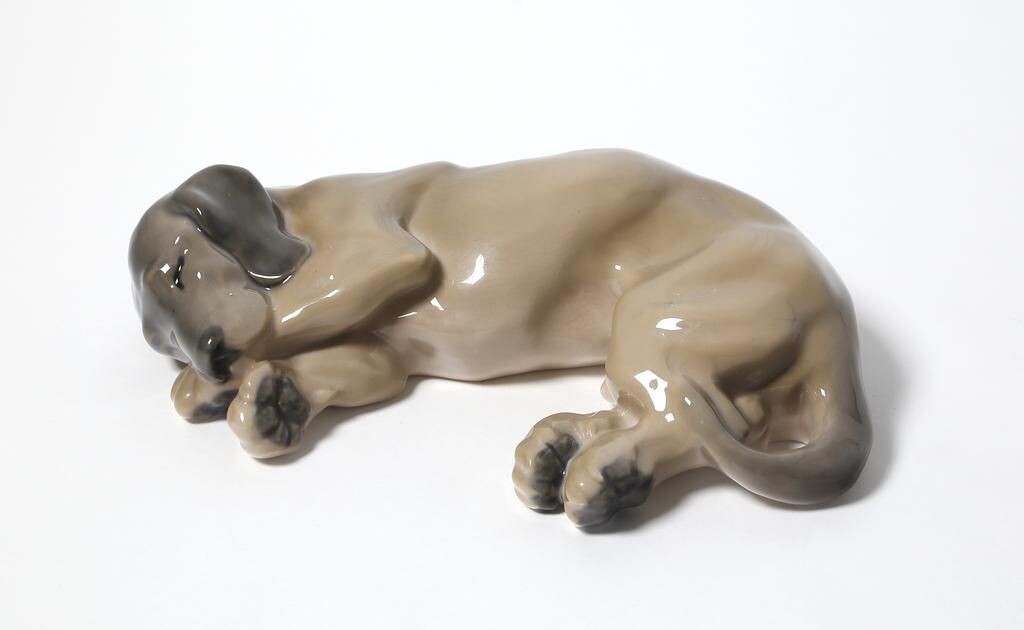 Фарфоровая фигура (статуэтка) "Такса".Ручная подглазурная роспись.Дания, г. Копенгаген, Royal Copenhagen, 1898-1923 гг.Скульптор: Knud Kyhn (годы жизни: 1880-1969).Клеймо производителя.Дизайн росписи - 1238.Номер модели - 781, производится с 1906 года."126" - порядковый номер художника, расписавшего статуэтку, работал на фабрике с 1907 по 1919 гг.Размер: 5 х 19,5 см.Статуэтка первого сорта.Без сколов, повреждений и без реставраций.На щеке небольшая рельефная точка от лопнувшего пузырька глазури.