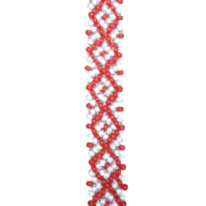 Универсальное плетение, подходит для создания чокера, браслета, кольца. Пошаговый процесс можно посмотреть здесь: https://youtu.be/xuupcUHx8dM и https://rutube.ru/video/0acc9daca4d1dabf2d9fff0b8c81cbb0/ Материалы: бисер 10/0 двух цветов, мононить, замок, игла Самое важное, чтоб плести по схеме без ошибок — это обращать внимание откуда выходит нить. От этого зависит дальнейший набор бисера. Будьбе внимательны. Шаг 1. Набрать 4 бисерины, 1 красную и 3 белых. Оставить кончик около 20 см., он нужен для крепления замка. Завязать пару узелков. Шаг 2. Провести нить через 2 белые бисерины. Красная сверху. Шаг 3. Набрать 3 красных бисерины, провести нить в ту же белую, из которой выходит нить. Далее через 2 красных бисерины по кольцу Шаг 4. Набрать красную, белую, красную бисерины. Провести через красную бисерину, из которой выходит нить. Далее через красную и белую Шаг 5. Набрать белую, красную, белую бисерины. Провести нить через белую бисерину, из которой выходит нить. Далее в следующую бел