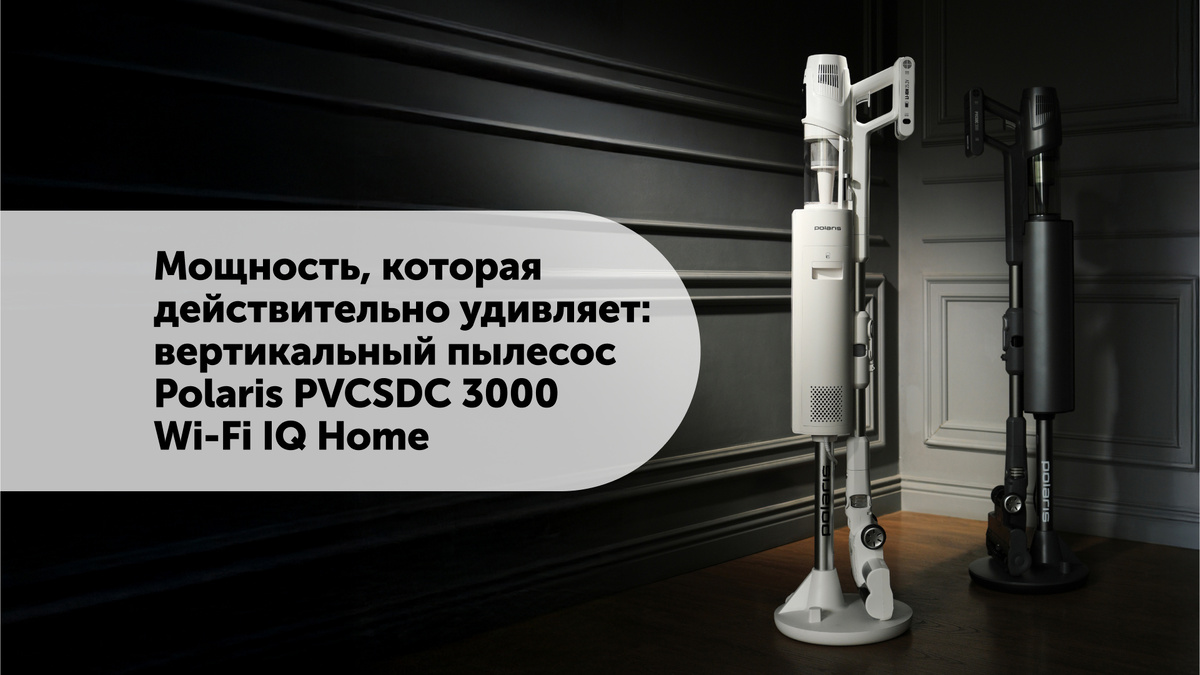 Если вы думаете, что беспроводные пылесосы — это всегда про компромиссы, новый Polaris PVCSDC 3000 Wi-Fi IQ Home докажет обратное. Это не просто удобное устройство для уборки c Wi-Fi управлением — это настоящий флагман по мощности среди вертикальных решений. Сила всасывания в 280 аВт при моторе 800 Вт — показатель, который раньше был доступен только у проводных моделей.