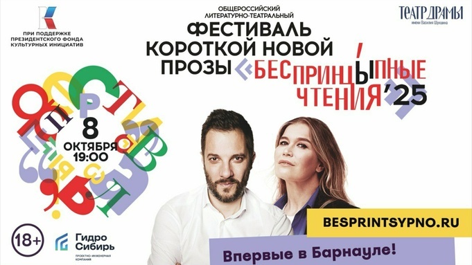 Мероприятие состоится 8 октября В Алтайском краевом театре драмы имени Шукшина состоятся гастроли фестиваля короткой новой прозы "БеспринцЫпные чтения – 2025". Как сообщает "Лига-Арт", мероприятие состоится 8 октября в 19:00. Фестиваль приедет с программой, в которую войдут рассказы победителей 2025 года, отобранные на конкурсе со всей России. Хедлайнерами станут актриса Кристина Бабушкина и создатель проекта Александр Цыпкин. Справка: фестиваль короткой новой прозы "БеспринцЫпные чтения" – это платформа, на которой начинающий и опытный писатель может представить свои авторские произведения слушателям и читателям. Основная концепция мероприятия – рассказы читают как известные артисты, так и сами авторы. Больше материалов на amic.ru.