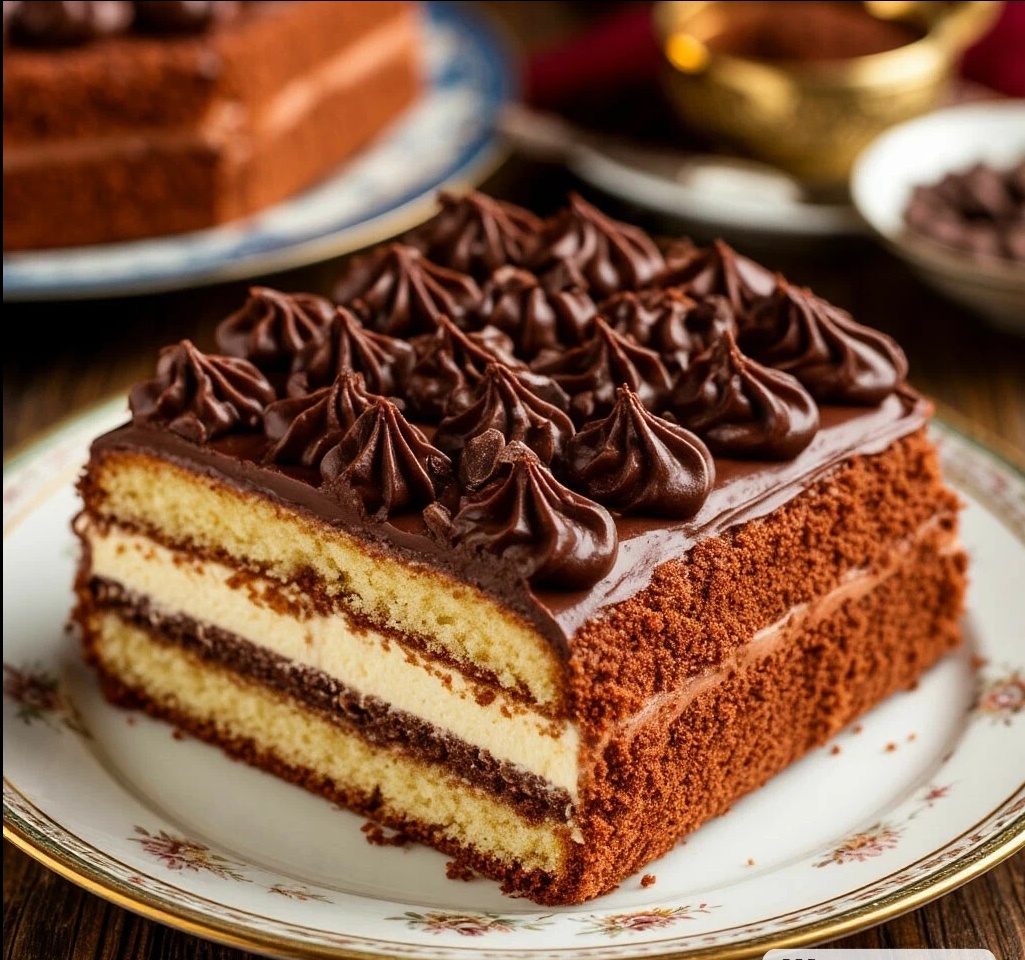Классический советский торт с воздушными коржами, нежным заварным кремом и шоколадной глазурью.