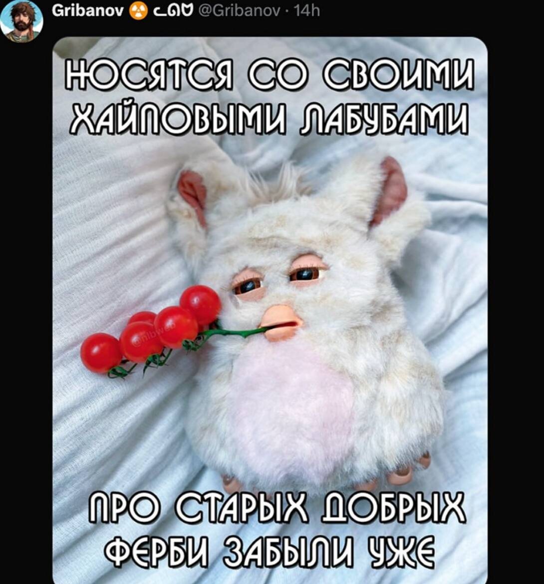 . . . Между прочим, у Furby из «Хэппи Мил» был гениальный маркетинговый ход. Если прислонить друг к другу лапки двух игрушек, они начинали петь песенку. Один Furby молчал — эффект срабатывал только в паре. Так что приходилось либо покупать два, либо идти в Мак всей компанией и собирать Furby вместе) Кто помнит?) Доброе утро! 🥰
